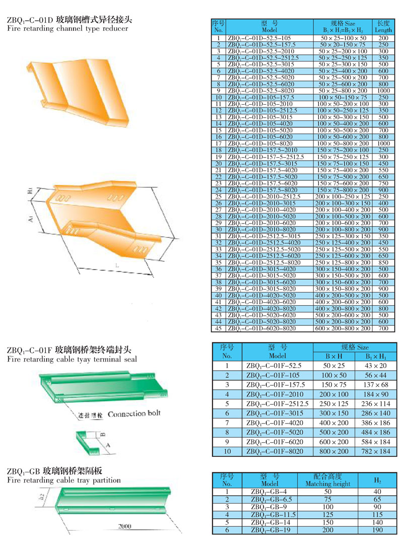 阻燃玻璃钢电缆桥架是我厂在钢制电缆桥架等生产的基础上,研制的一种新型产品。它具有强度高、绝錄性能好、耐化学商蚀、时火阻燃性能和足够的机械强度, 适用于石油、化工、治金、电力。
