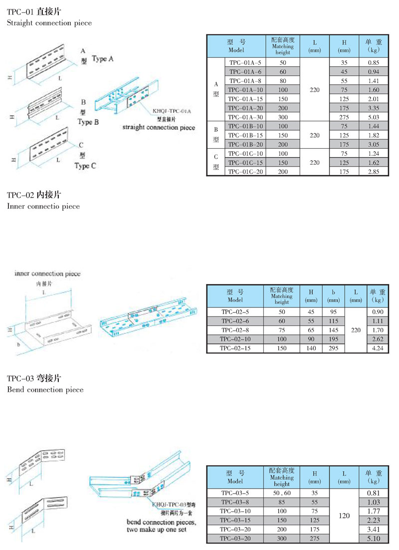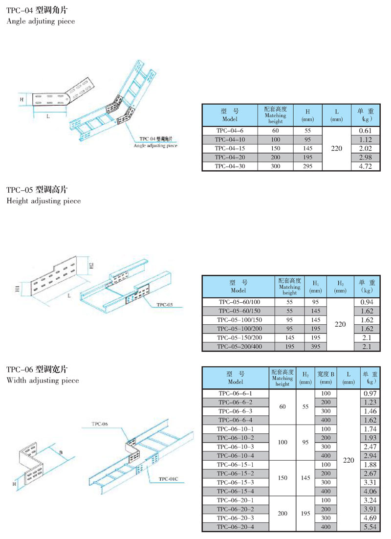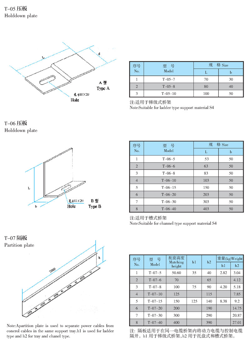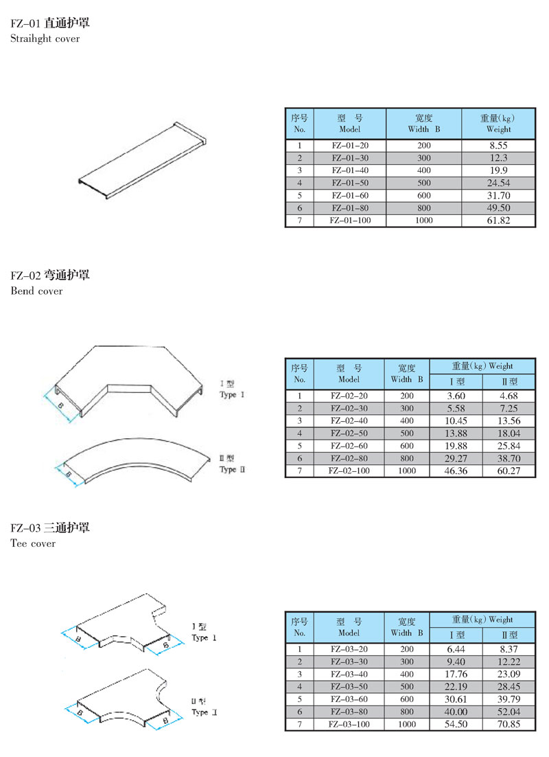 本部分主要是各种型号电缆桥架的通用附件。它适在电缆桥架安装中变宽、变高,连接、转向和分隔等必须的配件。